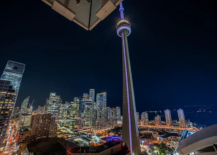 Located within minutes of Art Gallery of Ontario and Native Stone Art, Designer Condo W/ Cn Tower View & Parking Toronto features views of the lake. A hot tub, a sauna, and an indoor pool are available at the spacious 107 m^2 apartment, providing guests with a more serene stay.